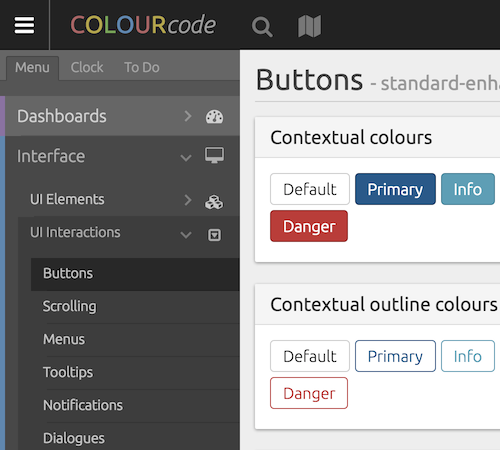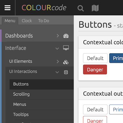 The menu system in the COLOURcode template is constructed from simple markup and is fully automatic and responsive. It automatically opens and closes as the viewport width increases and decreases. It can be toggled between different states, and the state persists across page refreshes using browser storage.